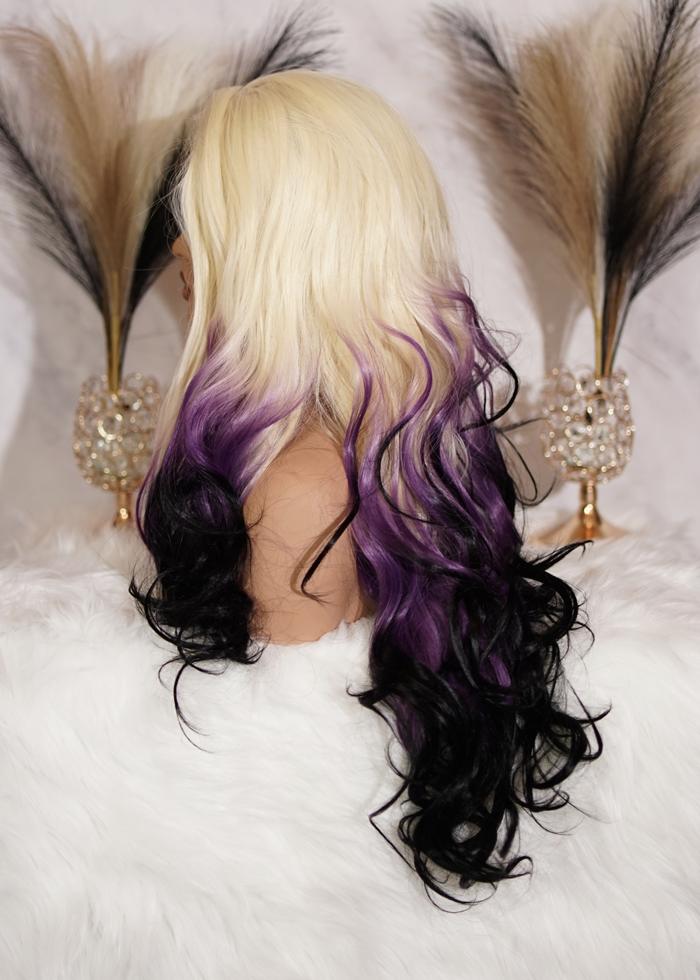 ★Color: Rubio Platino Con puntas Morado - Negro