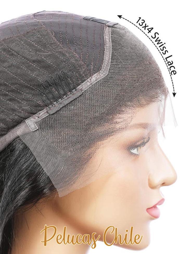 ★ Cuando se trata de una peluca indetectable de malla frontal o lace front, la malla aparece solo en la parte de la frente (en el flequillo), extendiéndose 13x4 pulgadas en la frente y corona. En el resto de la peluca el cabello es cosido en cortinas a máquina igual que ocurre en las pelucas de construcción clásica.