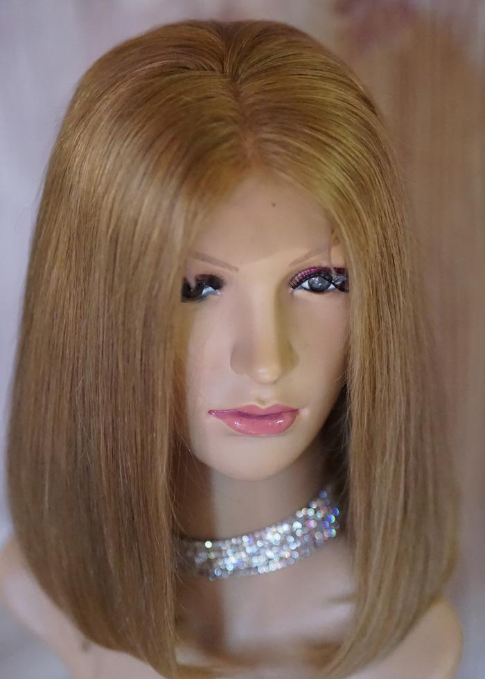 ★ Cuando se trata de una peluca indetectable de malla frontal o lace front, la malla aparece solo en la parte de la frente (en el flequillo), extendiéndose normalmente de oreja a oreja. En el resto de la peluca el cabello es cosido en cortinas a máquina igual que ocurre en las pelucas de construcción clásica.