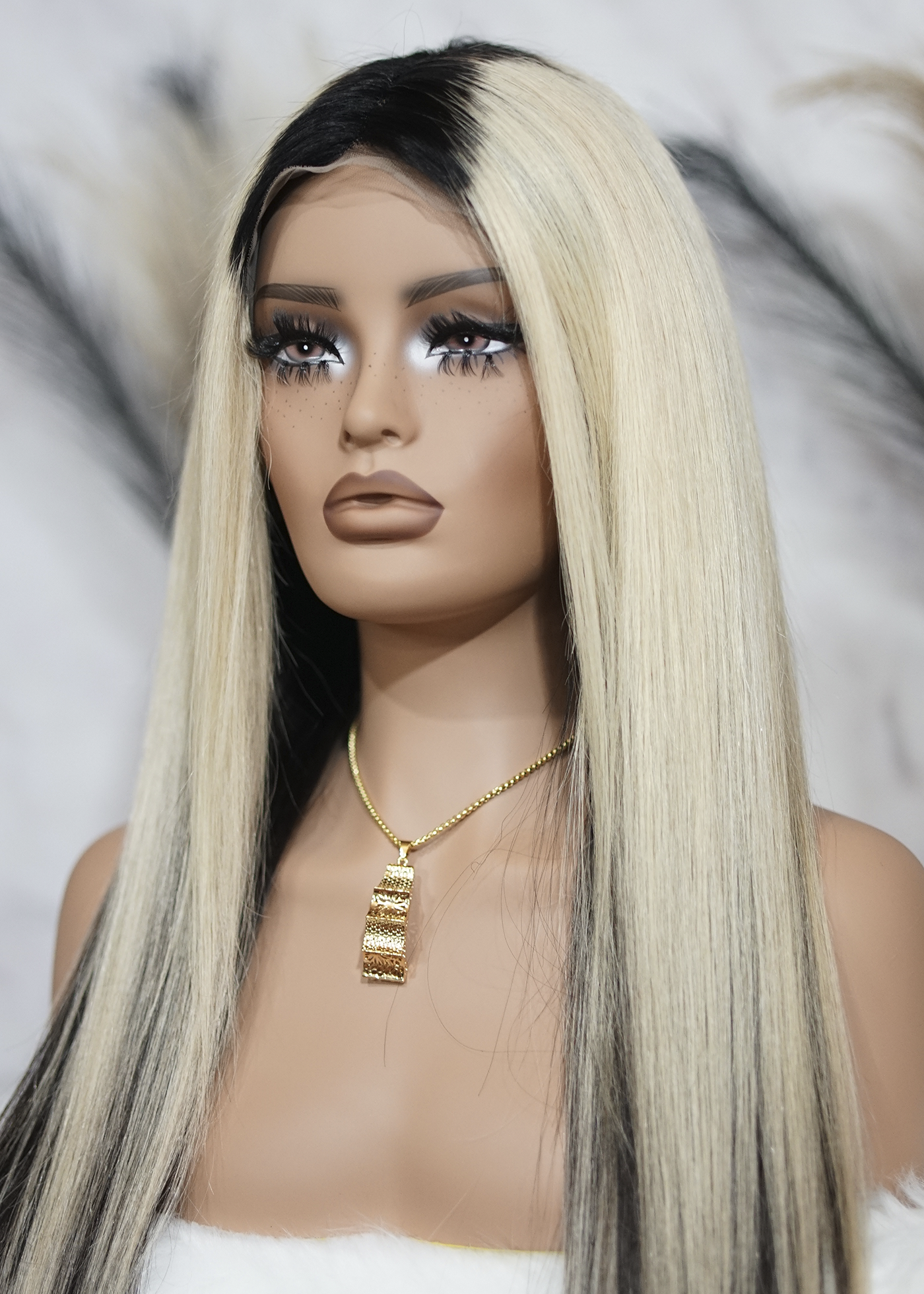 ★ Color: Rubio Platino mechas Crecimiento y mechas Negro